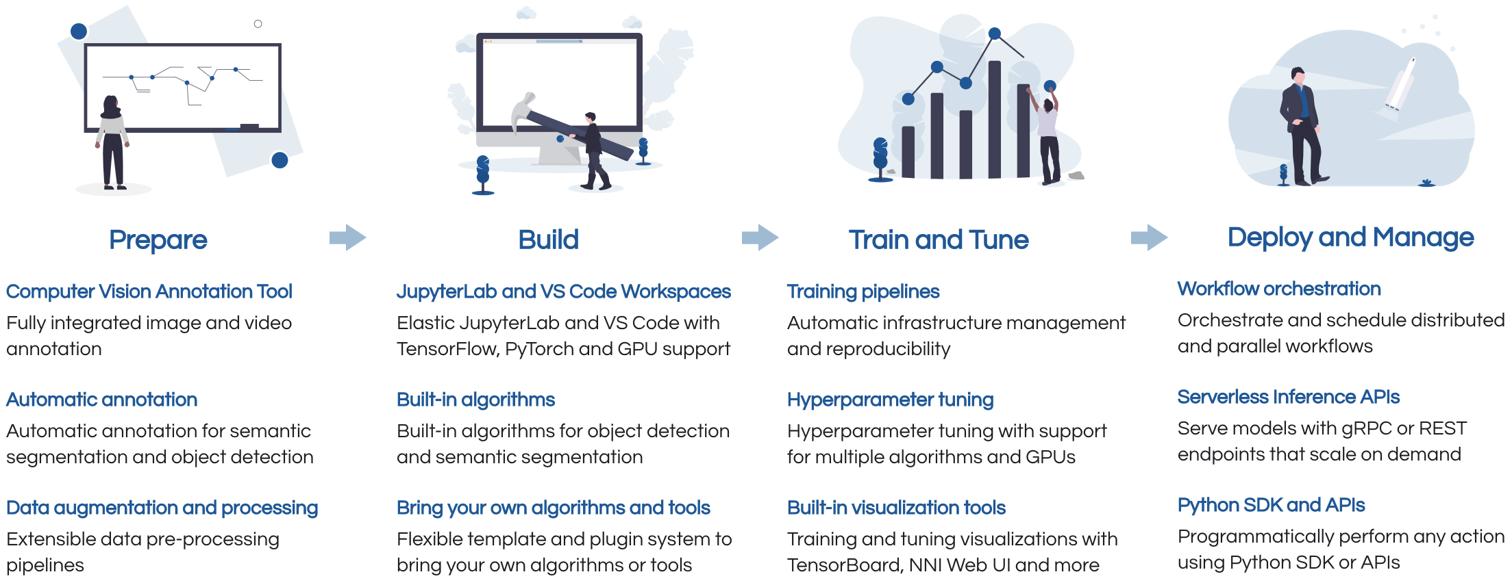 Label, build, train, tune, deploy and automate in a unified platform that runs on any cloud and on-premises.